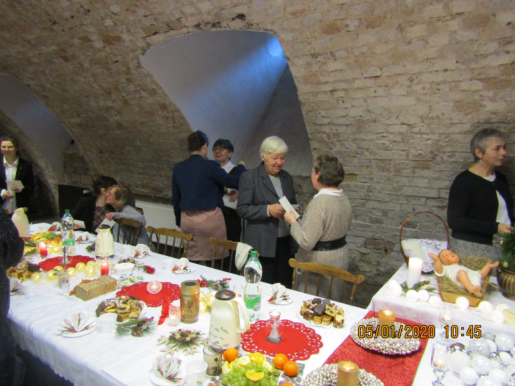 Zgromadziliśmy się w jednej z sal klasztoru oo. Karmelitów Bosych w Poznaniu, w zabytkowych podziemiach, w przygotowanej przez Wspólnotę scenerii przypominającej Grotę Betlejemską. W centralnym miejscu ustawiliśmy Żłóbek Dzieciątka Jezus, z którego światło, umieszczone w przezroczystych bombkach, rozlewało się zarówno na dary złożone na świątecznym stole, jak i na nas, skupionych wokół niego.